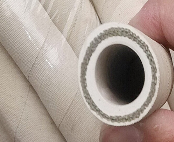 结构:夹布蒸汽胶管内、外胶层均由耐热性能优良的合成胶制成,中间纯棉帆布增强层,管体具有柔软、轻便、挠性好、耐热性能高等特点。